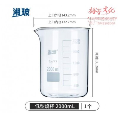 湘玻 玻璃烧杯低型带刻度透明量杯加厚高硼硅耐高温实验器材 【2000mL】 高硼硅玻璃SKU:yzwhyp864384