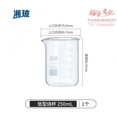 湘玻 玻璃烧杯低型带刻度透明量杯加厚高硼硅耐高温实验器材 【250mL】 高硼硅玻璃SKU:yzwhyp864386