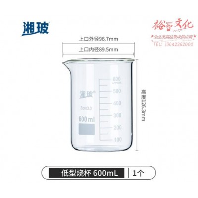 湘玻 玻璃烧杯低型带刻度透明量杯加厚高硼硅耐高温实验器材 【600mL】 高硼硅玻璃SKU:yzwhyp864397