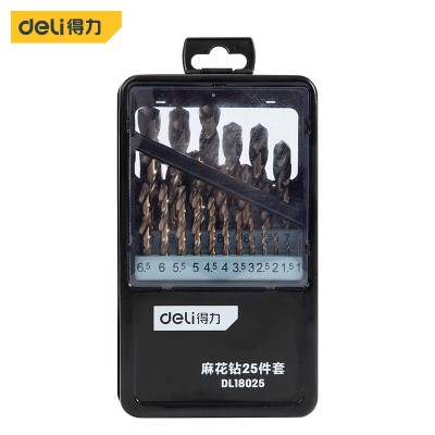 得力DL18025 25件套麻花钻Φ1-13mm电动工具麻花钻头套装金属打孔木工不锈钢 高速钢