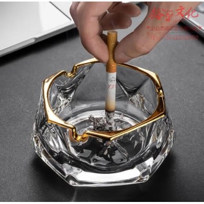 宫薰 烟灰缸创意透明水晶家用办公室茶几装饰摆件 几何金边10cmSKU:yzwhyp864550