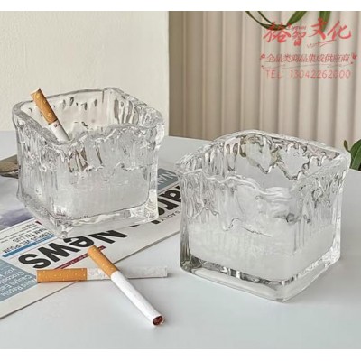 宫薰 烟灰缸玻璃创意防飞灰家用办公室茶几装饰摆件 冰块9cmSKU:yzwhyp864562