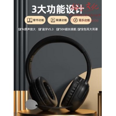 艾本M2儿童诵读耳返耳机头戴式隔音学习耳机快速记忆蓝牙耳机背书神器提高背书效率 暗夜黑色SKU:yzwhyp864651