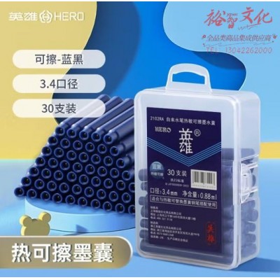 英雄(HERO)热可擦墨囊 2102RA小学三年级练字可替换热敏摩易擦 3.4mm口径 30支装 蓝黑色SKU:yzwhyp864792