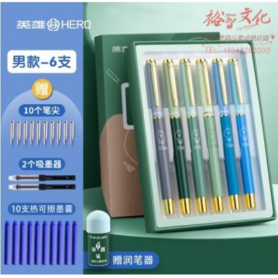 英雄(HERO 热可擦钢笔套装 卡通莫兰迪小学生三年级练字热敏可擦正姿可替换墨囊 男款-6支装(颜色随机)SKU:yzwhyp864804