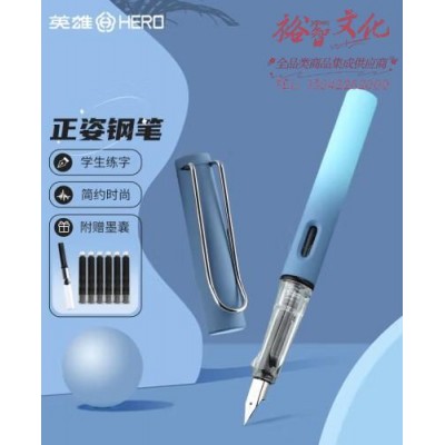 英雄(HERO)钢笔 359B 明尖铱金男女学生初学练字三年级正姿签字钢笔(附加6支墨囊) EF尖 渐变深蓝SKU:yzwhyp864814