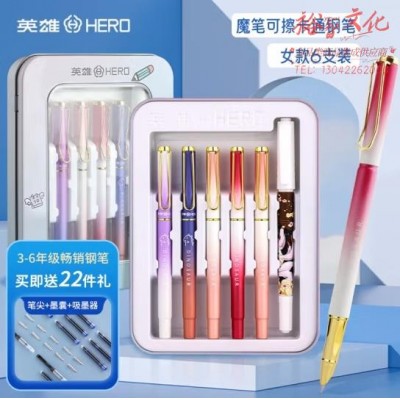 英雄(HERO)钢笔 3172卡通铁盒三年级正姿练字日常书写套装 女款 6支装(颜色随机)SKU:yzwhyp864817