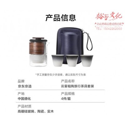 京东京造渐变旅行茶具户外便携功夫茶具套装 玻璃茶壶陶瓷茶杯一壶三杯SKU:yzwhyp864835