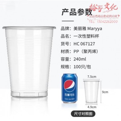 美丽雅 一次性杯子塑料杯240ml*100只加厚透明果汁饮料水杯小号商务家用SKU:yzwhyp864885