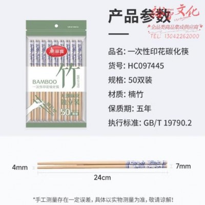 美丽雅 一次性筷子独立包装50双 高档碳化印花筷子露营野餐打包餐具SKU:yzwhyp864888