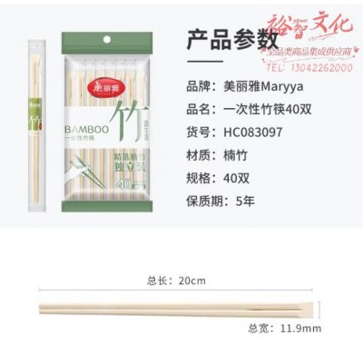 美丽雅 一次性筷子独立包装40双竹筷家用野营快餐卫生外卖打包方便餐具SKU:yzwhyp864889