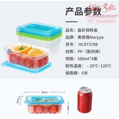 美丽雅 一次性饭盒580ml*4套 食品级保鲜野餐分装打包餐盒带盖可微波SKU:yzwhyp864904