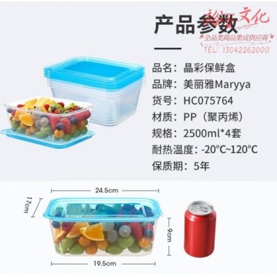 美丽雅保鲜盒食品级2500ml*4套 冰箱冷冻收纳盒微波炉加热分装饭盒SKU:yzwhyp864906