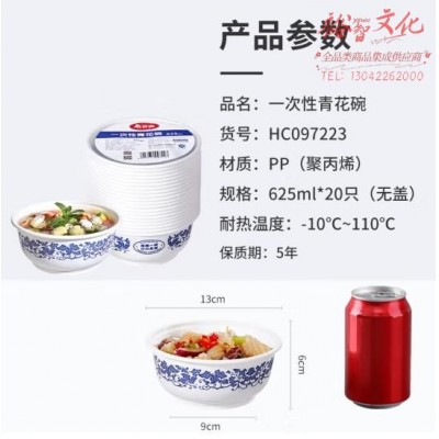 美丽雅一次性碗食品级625ml*20只 耐高温可微波打包野餐泡面汤碗不带盖SKU:yzwhyp864908
