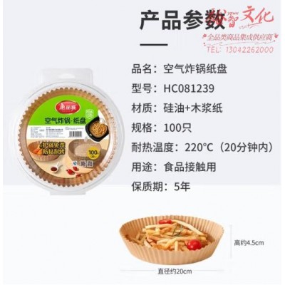 美丽雅空气炸锅专用纸20cm*100只 烘焙吸油隔油纸 圆形硅油纸盘SKU:yzwhyp864911