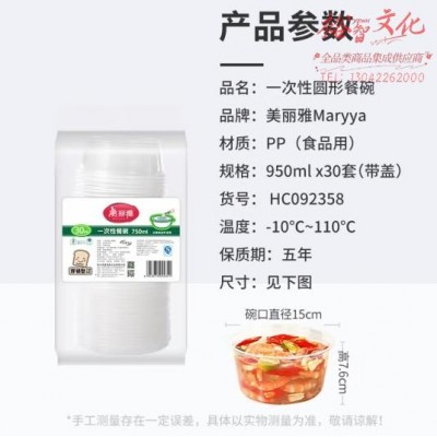 美丽雅一次性碗带盖 食品级饭盒950ml*30只 可微波打包野餐外卖餐盒SKU:yzwhyp864917
