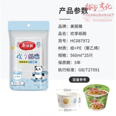 美丽雅一次性碗食品级餐盒560ml*25只 耐高温打包野餐圆形纸碗饭盒SKU:yzwhyp864929