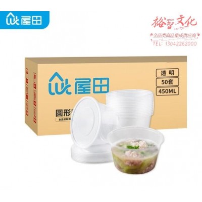 屋田一次性饭盒快餐盒打包盒塑料圆形带盖450ml 50套外卖打包汤碗SKU:yzwhyp864961