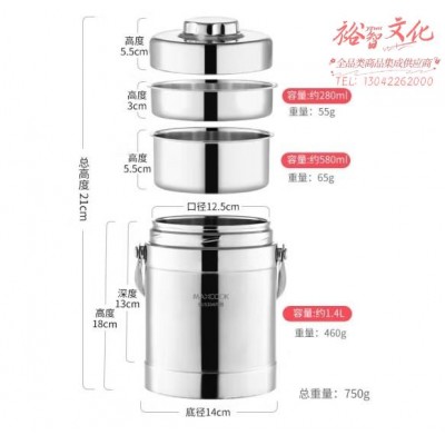 美厨(maxcook)304不锈钢保温饭盒提锅1.4L 双层保温桶学生便携式饭盒 MCTG3684SKU:yzwhyp864963