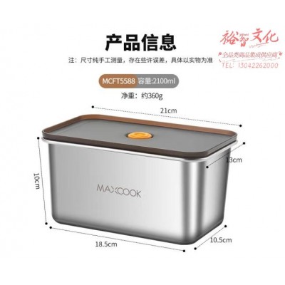 美厨(maxcook)304不锈钢保鲜盒 带盖饭盒便当盒冰箱密封储物盒2100ml MCFT5588SKU:yzwhyp865001