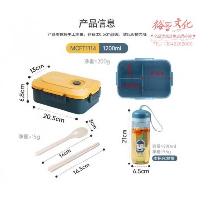 美厨(maxcook)微波炉饭盒 学生饭盒塑料饭盒1200ml 配餐具保温袋水杯MCFT1114SKU:yzwhyp865015