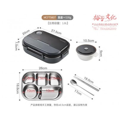 美厨(maxcook)304不锈钢饭盒 微波炉饭盒5格保温学生饭盒配餐具1.6L灰MCFT9807SKU:yzwhyp865049