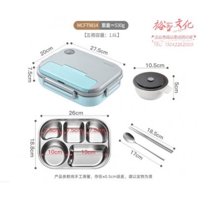美厨(maxcook)304不锈钢饭盒 微波炉饭盒5格保温学生饭盒配餐具1.6L蓝MCFT9814SKU:yzwhyp865050