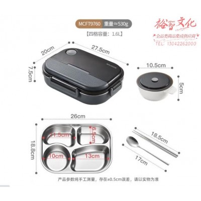 美厨(maxcook)304不锈钢饭盒 微波炉饭盒4格保温学生饭盒配餐具1.6L灰MCFT9760SKU:yzwhyp865051