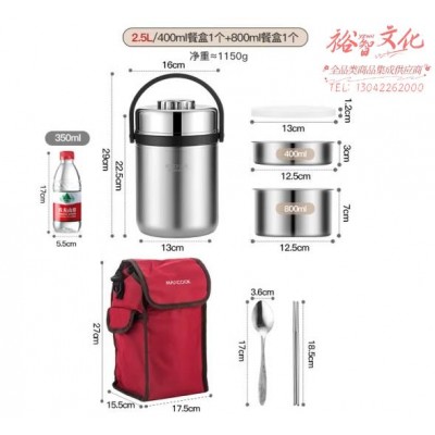 美厨(maxcook)304不锈钢保温饭盒提锅 2.5L大容量真空保温桶学生便当盒MCTG887SKU:yzwhyp865056