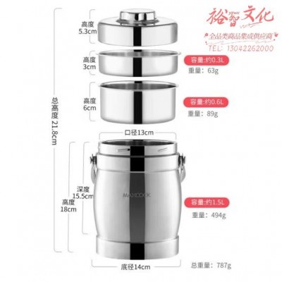 美厨(maxcook)304不锈钢保温提锅饭盒 1.5L 双层鼓形便携式保温饭盒 MCST-1.5SKU:yzwhyp865058