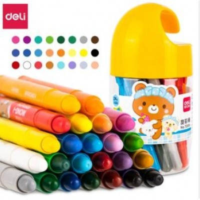 得力(deli)24色桶装学生水溶性旋转油画棒 儿童可水洗蜡笔绘画笔炫彩棒72056 5个/组