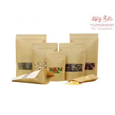 海斯迪克 HKZ-139 食品纸袋 牛皮纸袋开窗自封包装袋 自立袋 18*26 4高清(50个)SKU:yzwhyp865186