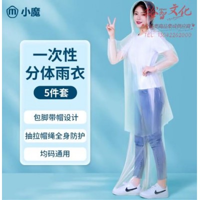 小魔一次性雨衣雨裤成人半透明便携雨衣户外骑行登山徒步雨衣5件装SKU:yzwhyp865291