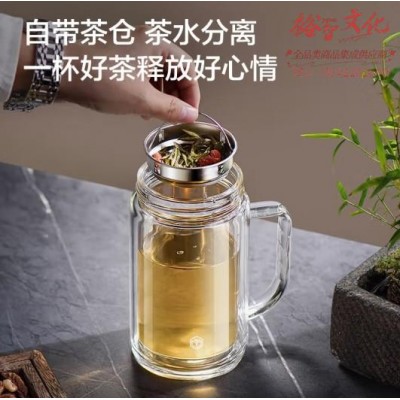 京东京造双层玻璃杯高硼硅茶水分离泡茶杯春节送礼大容量水杯500mlSKU:yzwhyp865422