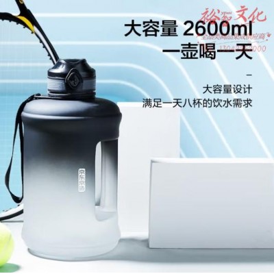 京东京造黑白渐变tritan运动水壶 大容量户外便携吨桶健身水杯男士2600mlSKU:yzwhyp865423