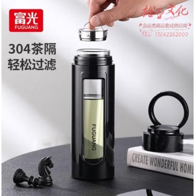 富光大容量耐摔玻璃杯 商务男士双层水杯塑玻泡茶杯茶水分离杯子400MLSKU:yzwhyp865452