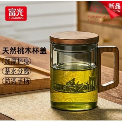 富光泡茶杯茶水分离杯玻璃杯子男士水杯办公室父亲节礼物高档送礼 耳型把手SKU:yzwhyp865456