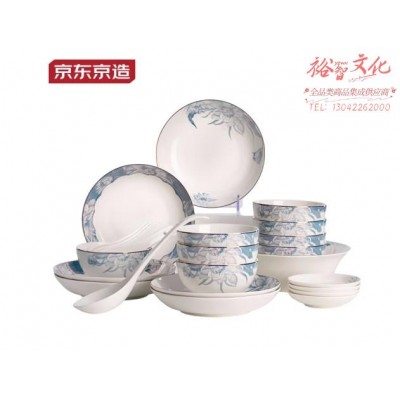 京东京造38头碗碟套装 景德镇餐具套装陶瓷碗碟家用金边送礼花好月圆 JZ-cg048SKU:yzwhyp865474