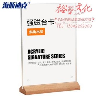 海斯迪克 HKW-344 亚克力展示牌 双面桌牌台卡广告牌 台签台卡架摆台定制 斜角木底强磁竖款(210×297mm)SKU:yzwhyp865500