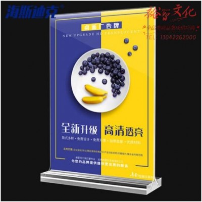 海斯迪克 HKW-344 亚克力展示牌 双面桌牌台卡广告牌 台签台卡架摆台定制 水晶抽拉竖款(210×297mm) 2个价SKU:yzwhyp865517