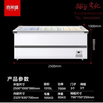 喜莱盛冰柜商用展示柜冷藏岛柜 卧式冷冻展示柜加深容量冷冻柜商超烧烤店用 双压缩机 XLS-25STDSKU:yzwhyp865864