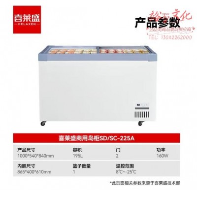 喜莱盛冰柜商用展示柜冷藏岛柜 卧式冷冻展示柜加深容量冷冻柜商超烧烤店用SD/SC-225ASKU:yzwhyp865875