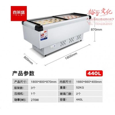 喜莱盛冰柜商用展示柜冷藏岛柜全铜管制冷 卧式冷冻展示柜冷冻柜商超烧烤店用XLS-18TDSKU:yzwhyp865930