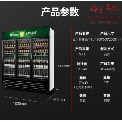 喜莱盛展示柜冷藏大容量风冷玻璃门商用陈列冷柜 超市便利店冰箱三门啤酒饮料柜 XLS-G980F绿SKU:yzwhyp865951