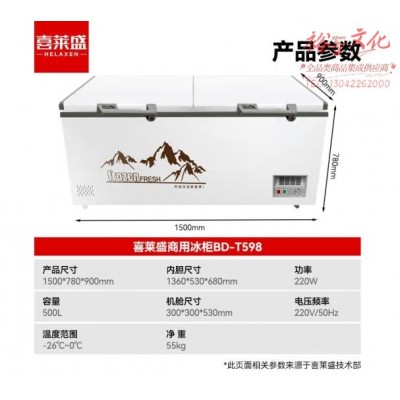 喜莱盛商用大容量冰柜冷柜保鲜柜冷藏冷冻雪糕卧式家用冰箱超市BD-T598SKU:yzwhyp865976