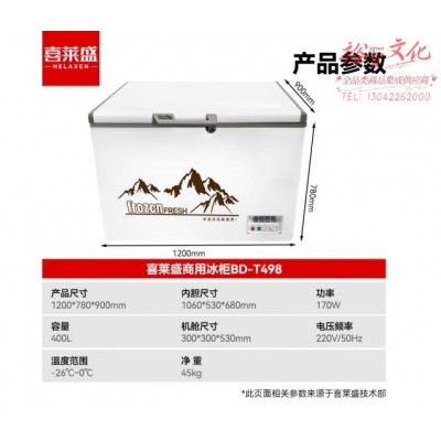 喜莱盛商用大容量冰柜冷柜保鲜柜冷藏冷冻雪糕卧式家用冰箱超市BD-T498SKU:yzwhyp865977
