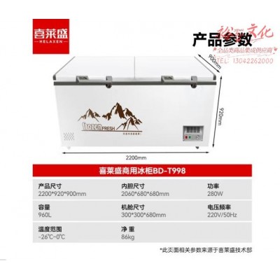 喜莱盛商用大容量冰柜冷柜保鲜柜冷藏冷冻雪糕卧式家用冰箱超市BD-T998SKU:yzwhyp866029