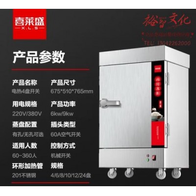 喜莱盛蒸饭柜4盘全自动商用蒸饭车 酒店餐饮设备蒸饭箱蒸包炉馒头炉食堂蒸饭机XLS-KZF6SSKU:yzwhyp866153