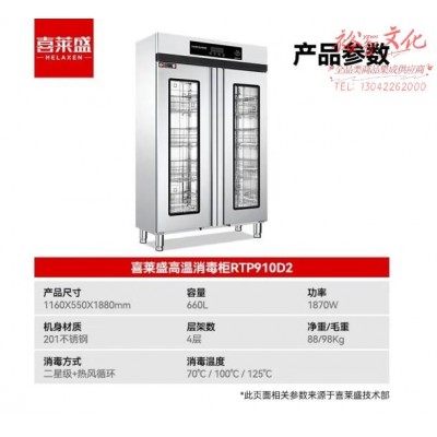 喜莱盛商用消毒柜热风循环不锈钢高温消毒碗柜 食堂大容量餐具消毒柜高温4层餐盘架专用RTP910D2SKU:yzwhyp866254