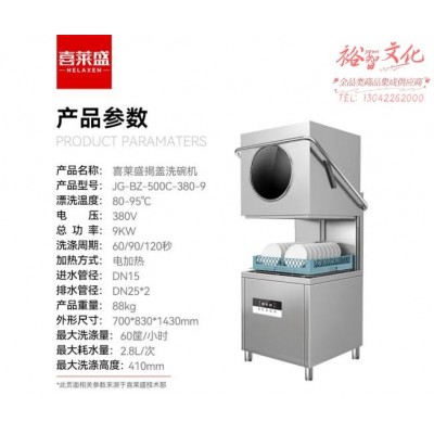 喜莱盛商用揭盖式洗碗机全自动刷碗机 酒店学校食堂大型自动刷洗碗机洗盘洗杯JG-BZ-500C-380-9SKU:yzwhyp866257